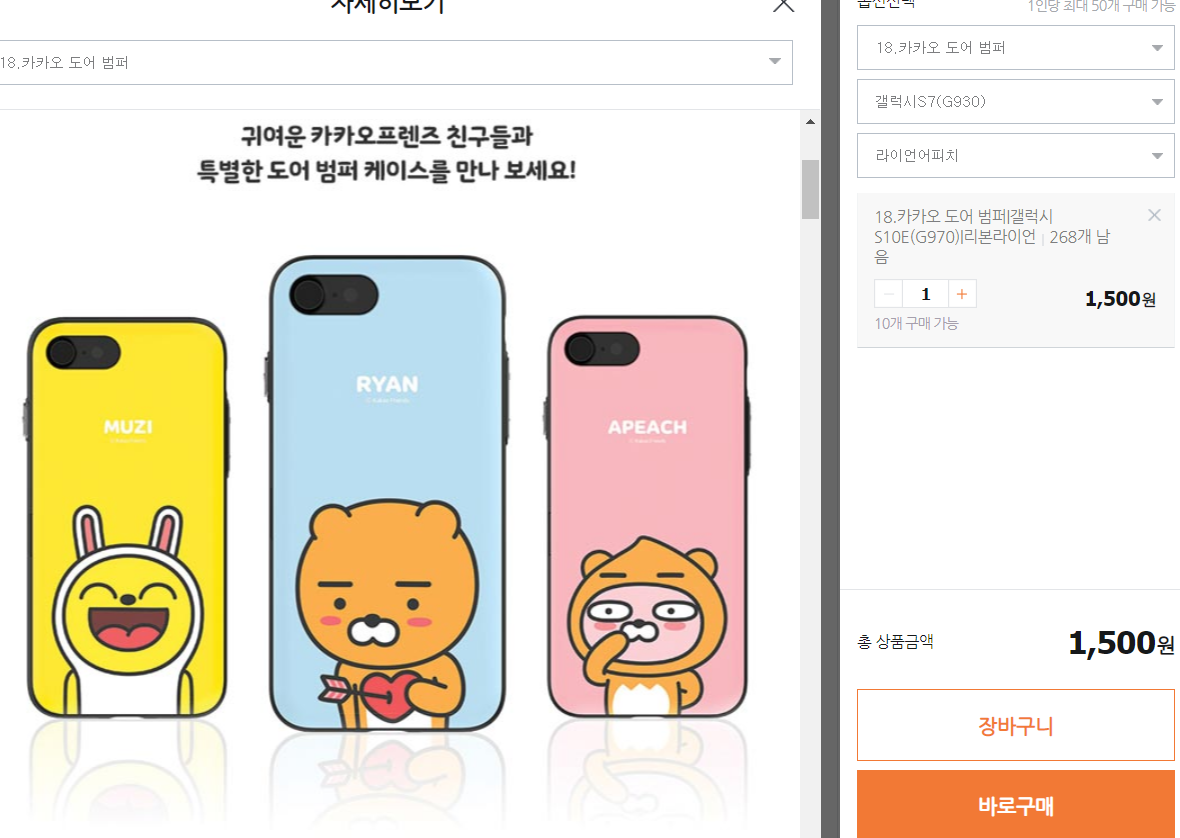 티몬에서 카카오 스마트폰 케이스 1500원 무료배송입니다.